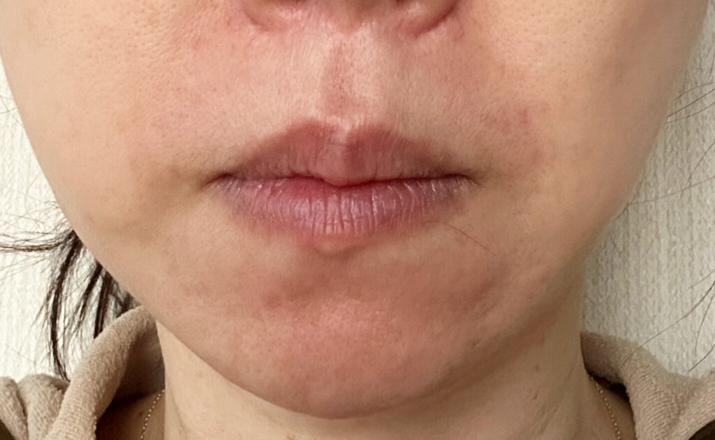 私が一番気にしている口横のポニョ。とくに右側が膨らんでいる。