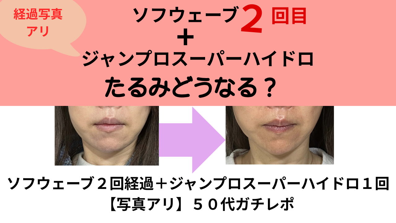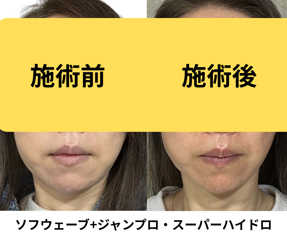 今回はソフウェーブ2回目+ジャルプロ・スーパーハイドロ(手打ち注入剤)の組み合わせ施術しました。